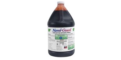 A navel dip for newborn calves, this product is iodine-free. It is ready to use with no dilution needed. The product uses a combination of a proprietary formula and green acid technology, along with isopropyl alcohol, to aid with drying the navel. It is environmentally friendly and proven to reduce infections in newborn calves.
